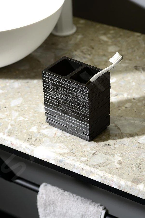 Aqualine Accessoires – Beker Voor Tandenborstels En Pasta, Zwart 08137
